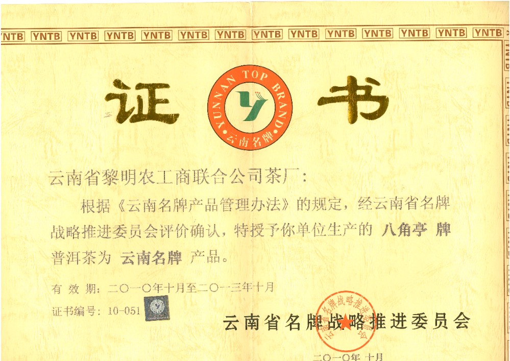 發證機構:   云南省名牌戰略推進委員會 發證時間 :   2010-10-01