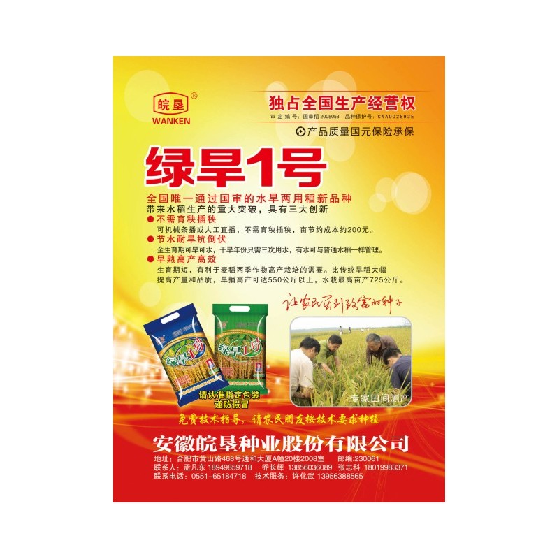 【風險提示】:種子應儲藏在低溫(25℃以下)、干燥(相對濕度70%以下)及通風處;種子調運后及時做好防潮、防濕、防蟲、防鼠等工作并在上述條件下進行儲藏,做到在安全儲藏條件下、質量保證期內規范安全用種;請遵照當地農技部門做好科學栽培,做好稻瘟病、稻曲病、紋枯病、白葉枯、條紋葉枯病、黑條矮縮病、螟蟲、稻飛虱等病蟲害的綜合防治工作,由于栽培措施不當和病蟲害及氣候等因素造成的一切損失責任自負;按審定適宜種植區域種植,超區域銷售或種植造成的損失責任自負,公司概不負責;根據種植季節結合當地合理安排播期,規避因高低溫、風暴倒伏等人為不可抗逆因素造成的損失。