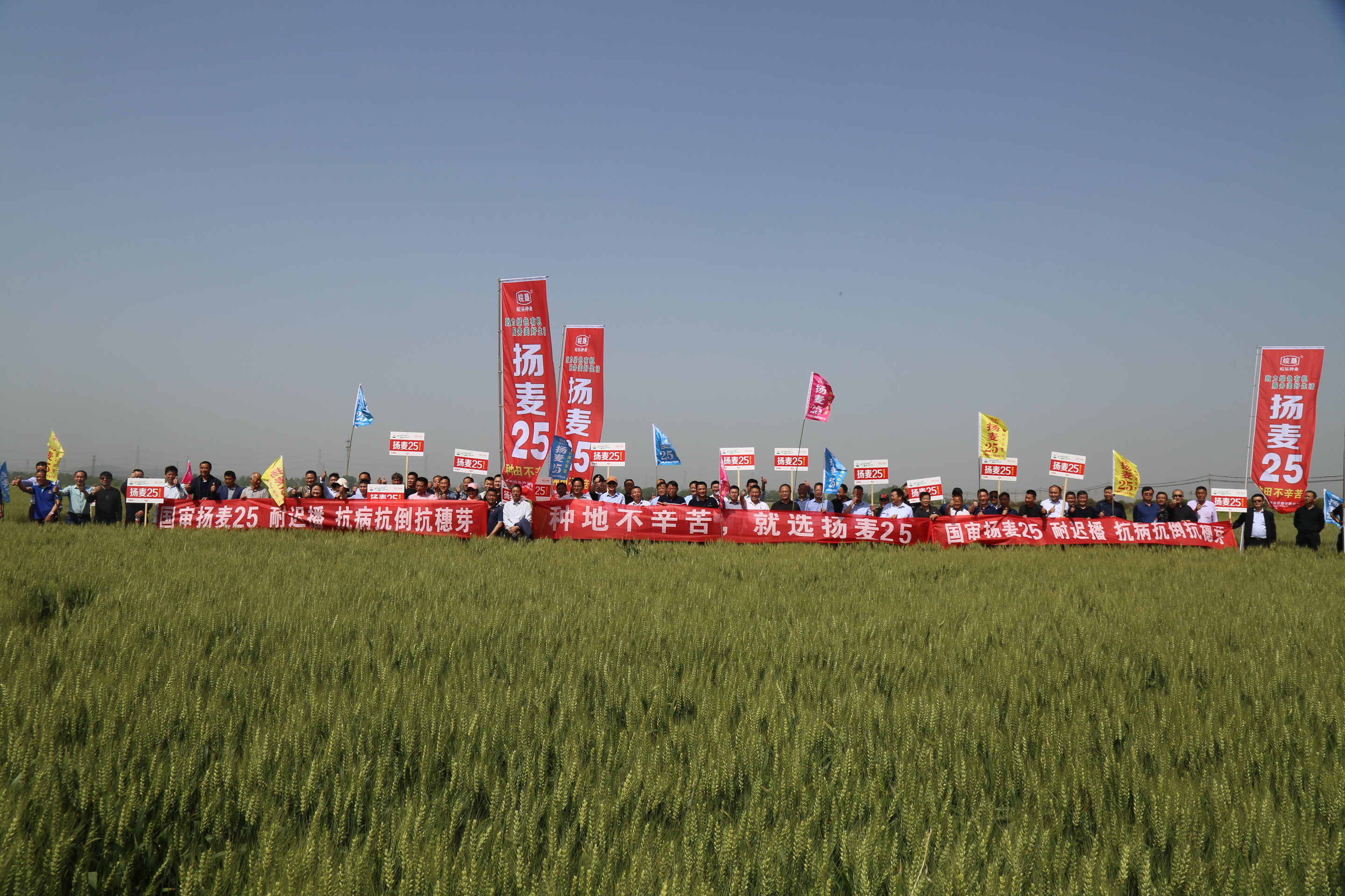 (2021年在淮南農(nóng)場召開揚(yáng)麥25品種觀摩會)
